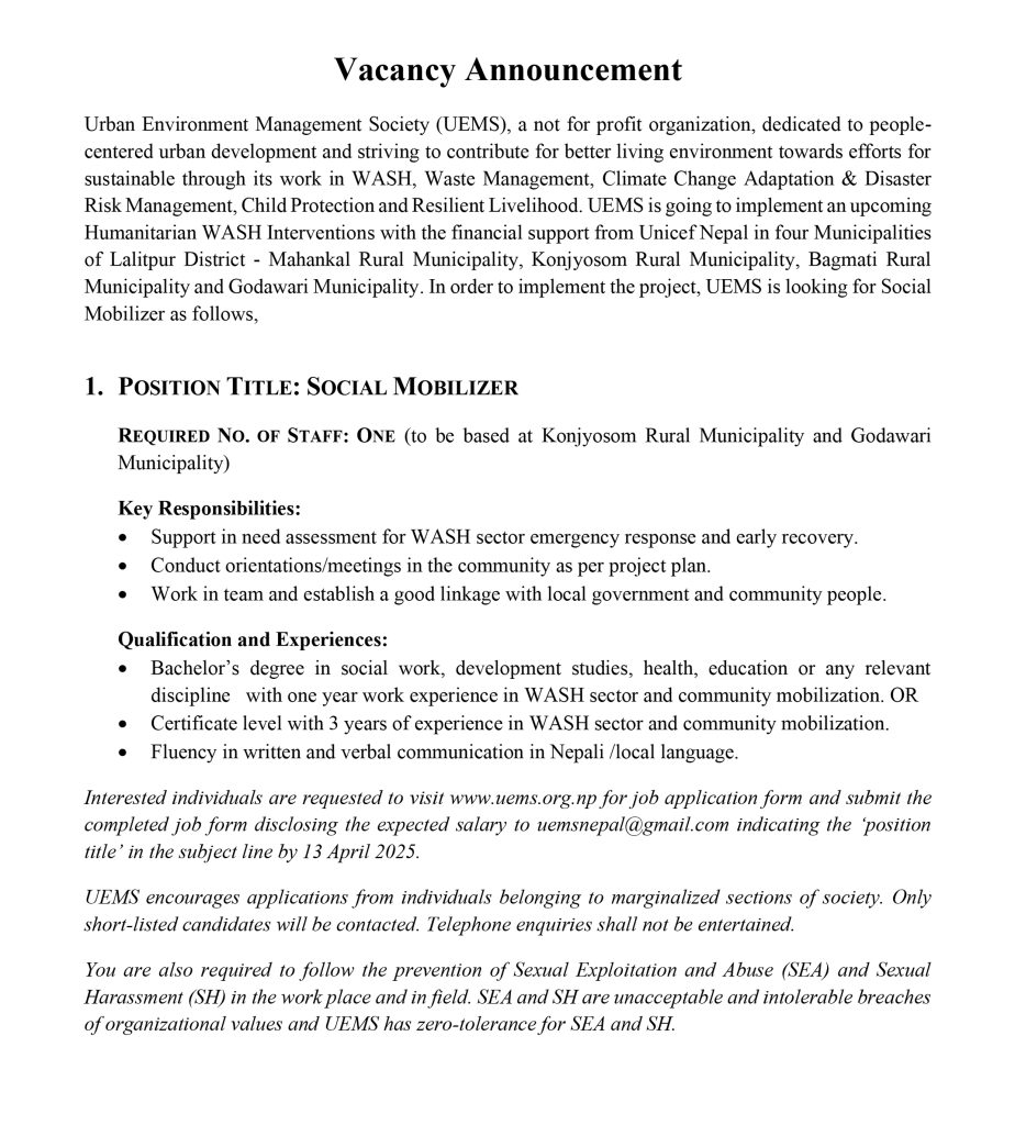 Vacancy Announcement (Social Mobilizer)